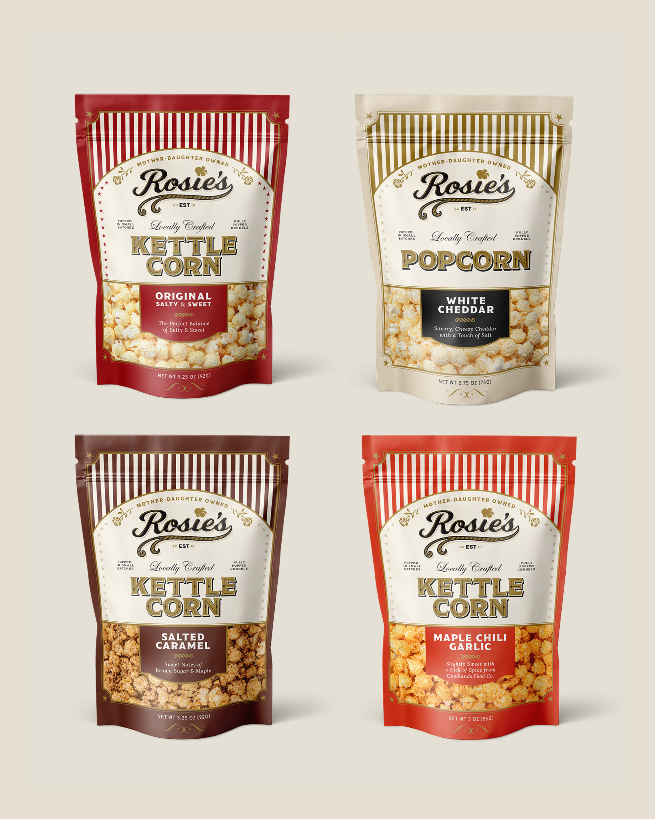 Rosie’s Kettle Corn was born from an ancient Greek concept: Xenia (ξενία) - heartfelt hospitality towards strangers. Growing up at our Yiayia Rosie’s table, we learned that no guest should ever leave empty-bellied or empty-hearted. At Rosie’s, we carry that legacy forward with her vibrant spirit and compulsion to share something delicious, with strangers and friends alike. Open a bag of our small-batch sweetness and join the family!